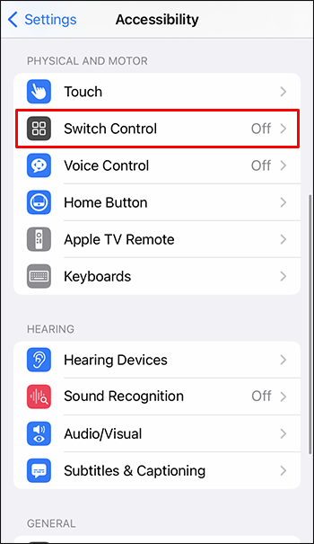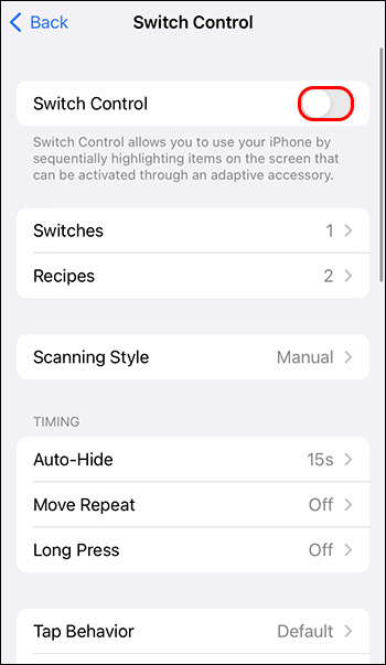 - Return to “Switch Control” and toggle on the setting.