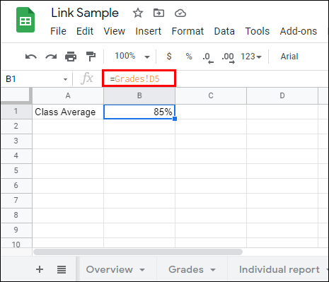 - Click one of the cells and type in =[Sheet name]![number of the cell that you’d like to paste].