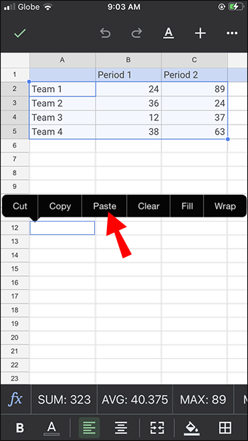 - Move to your new worksheet, then press and hold a finger on the screen. The word “Paste” will be displayed within a few seconds.