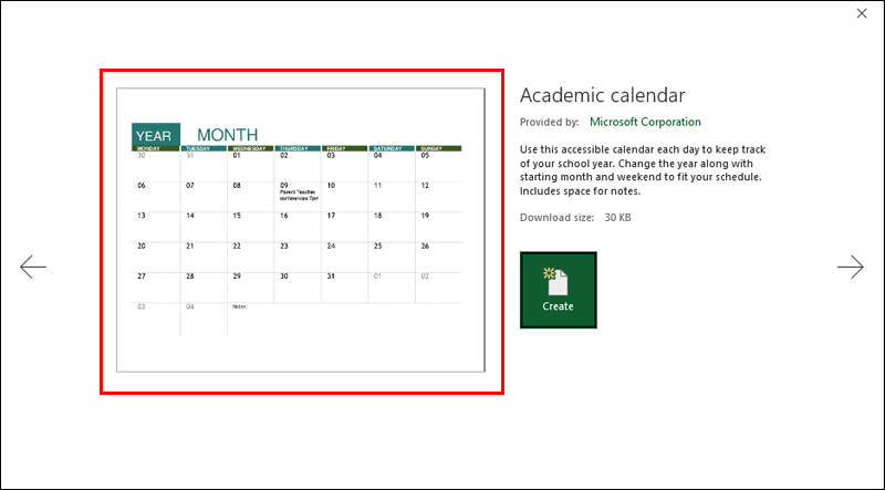 However, you don’t have to visit the Microsoft site to get calendar templates. You can find some available right from Excel. Here’s how to access calendar templates in Excel: