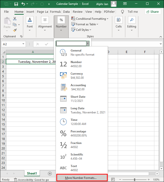 - Under “Number,” choose “Date,” then click on “More Number Formats.”