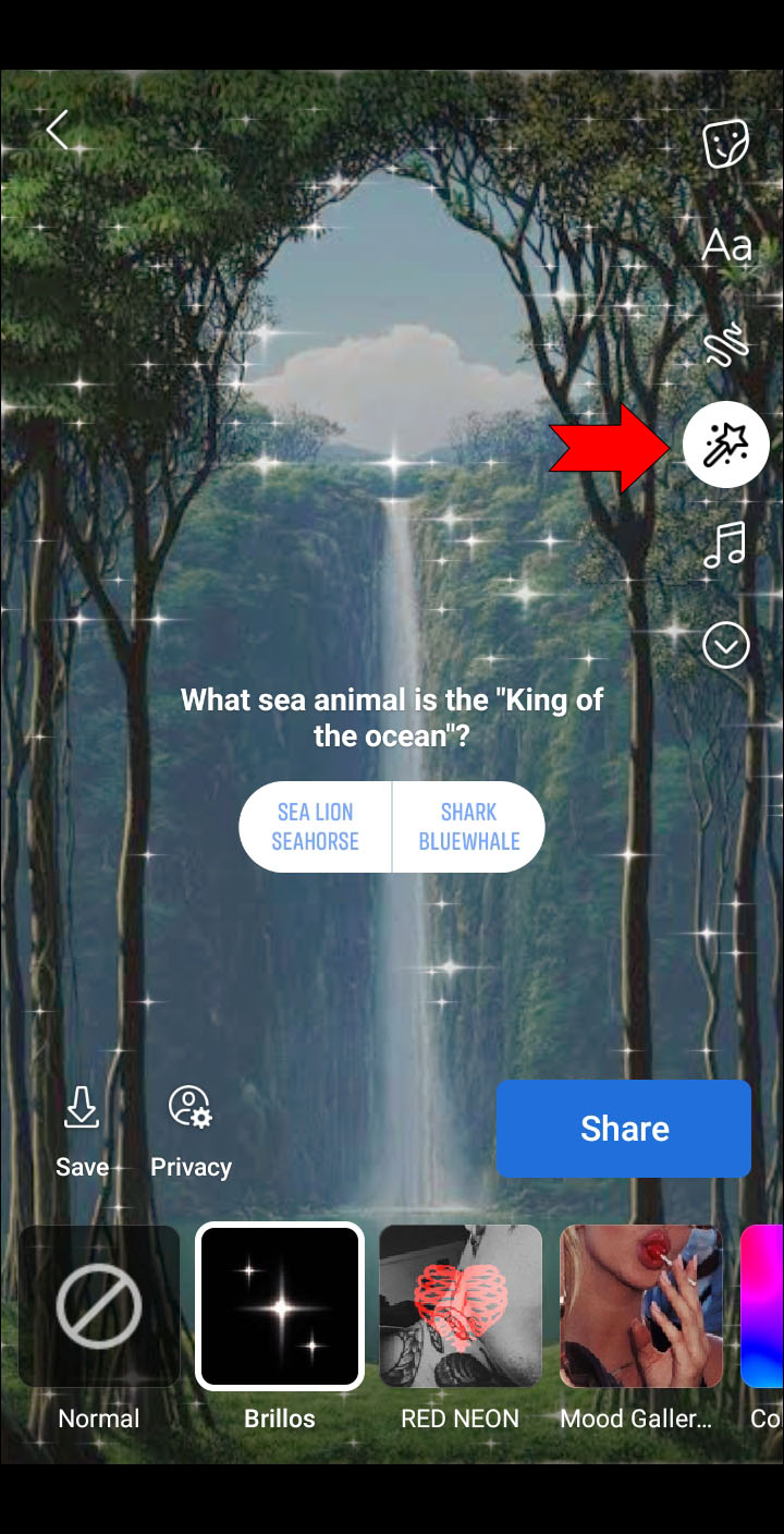 - Customize the post by tapping and adding different effects and stickers.
