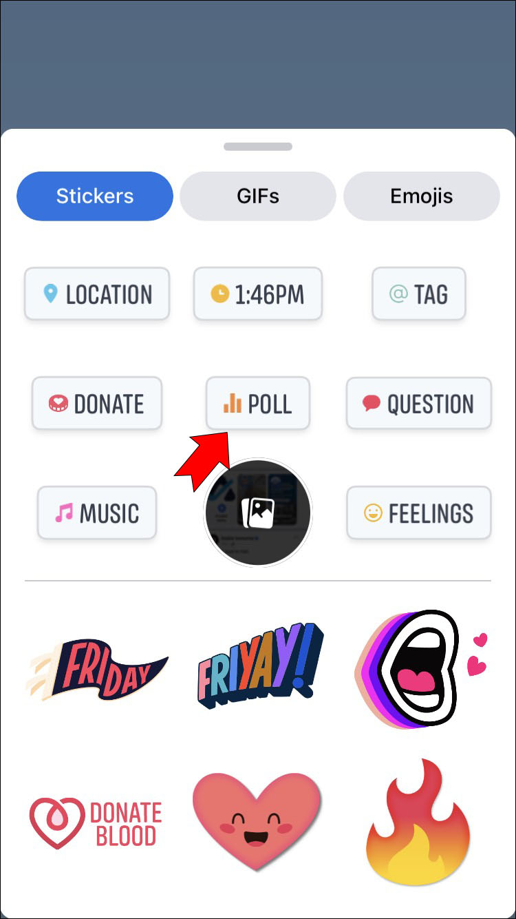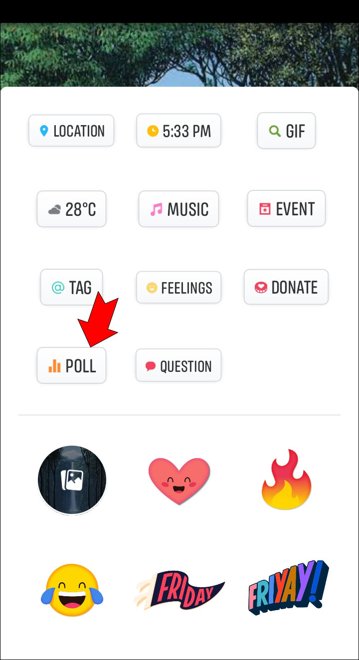 - Tap the sticker button and select “Poll” from the list.