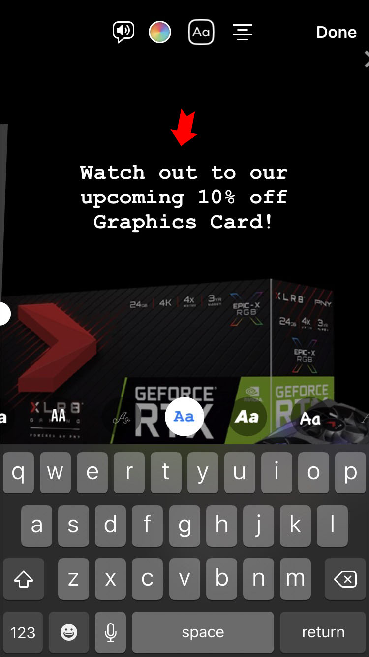 - Choose a Story template. For example, “Text” and write about an upcoming sale.