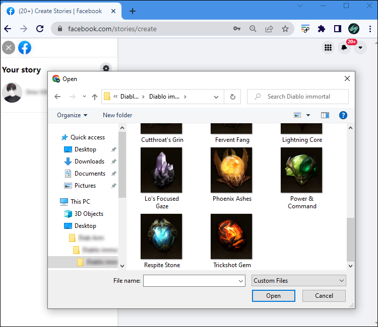 - Browse your computer files for the photos you want to post to the Story.