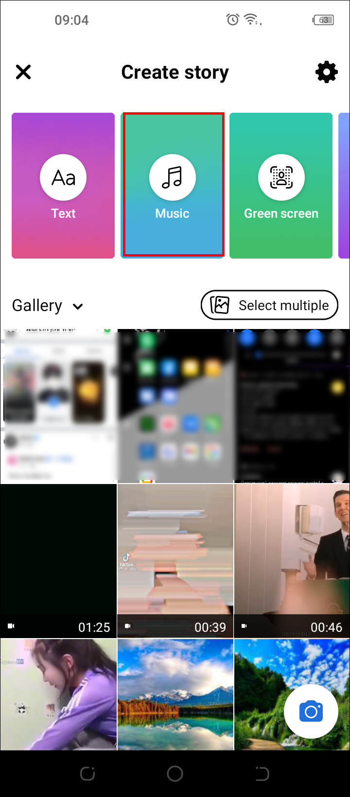 - Choose the “Create Story” option and select the “Music” option.