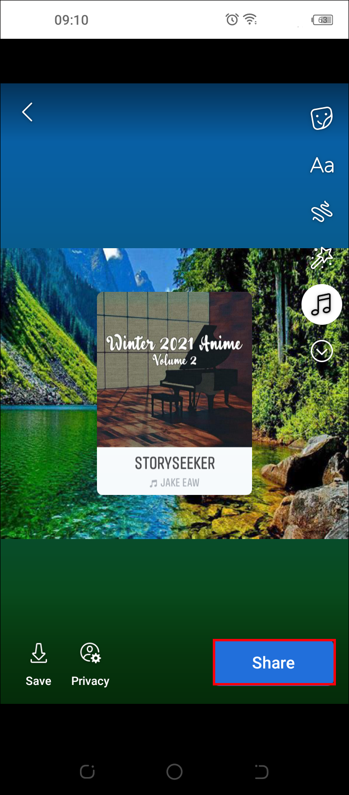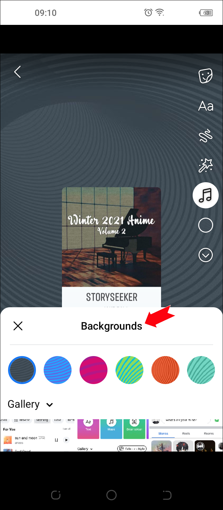 - Customize the Music Story by changing the background color or adding effects.