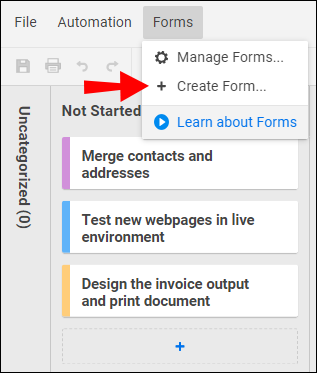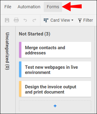 2. Click on the “Forms” button at the top left-hand side of the window.