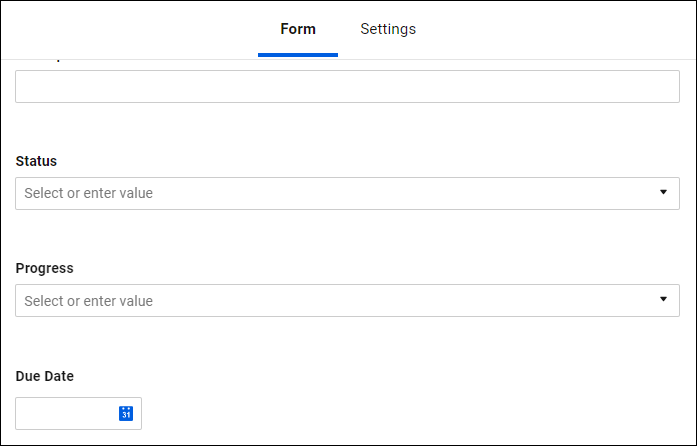 The column names on your sheet will automatically appear on the form. You can add new form sections and customize them by clicking on each form element. You can choose among many column types such as text/number, checkbox, date, single or multi-select drop-downs, and so on.