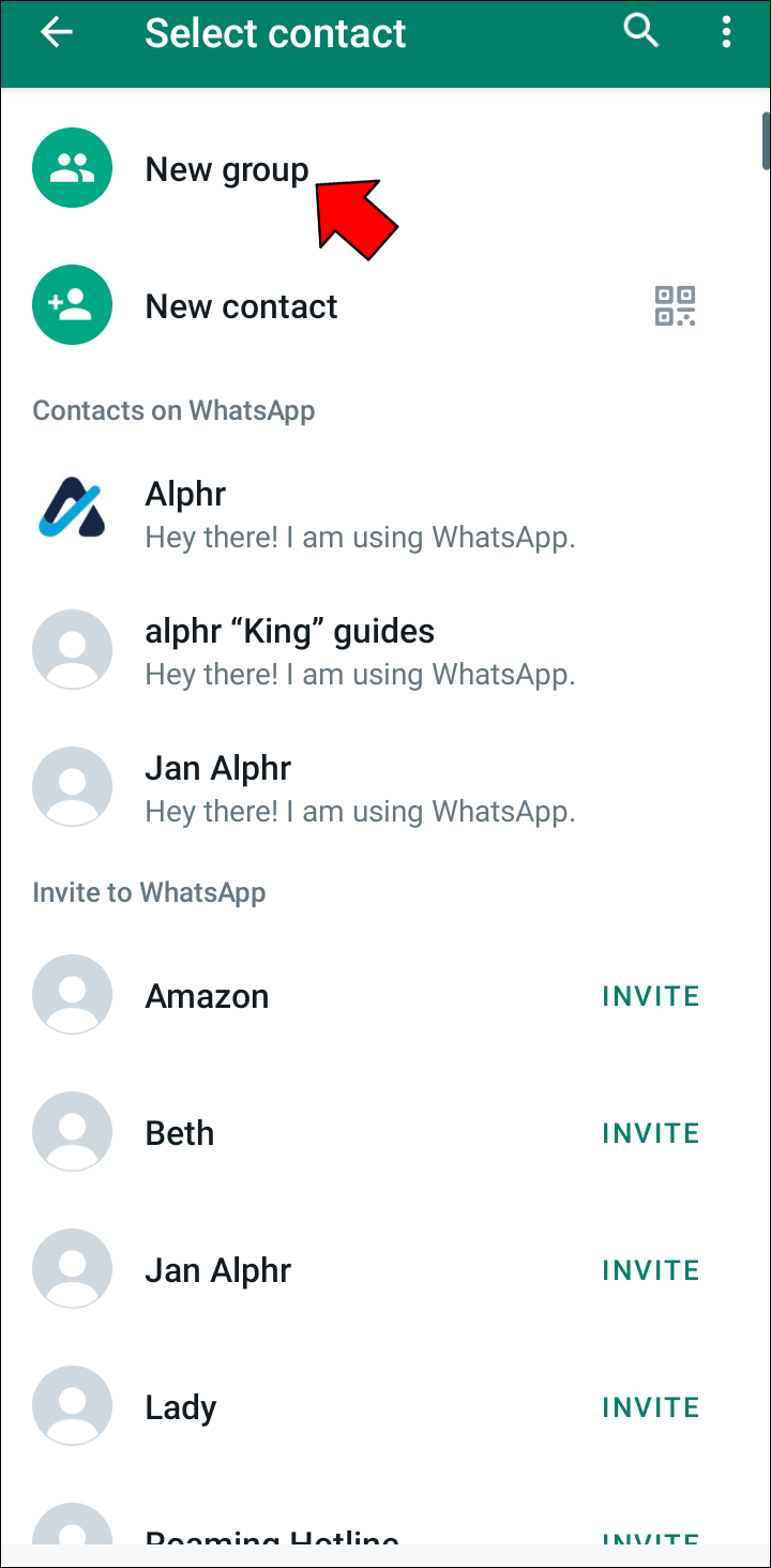 - Open the WhatsApp Android or iOS app and create a group chat as instructed above. Add a single member to your group chat.
