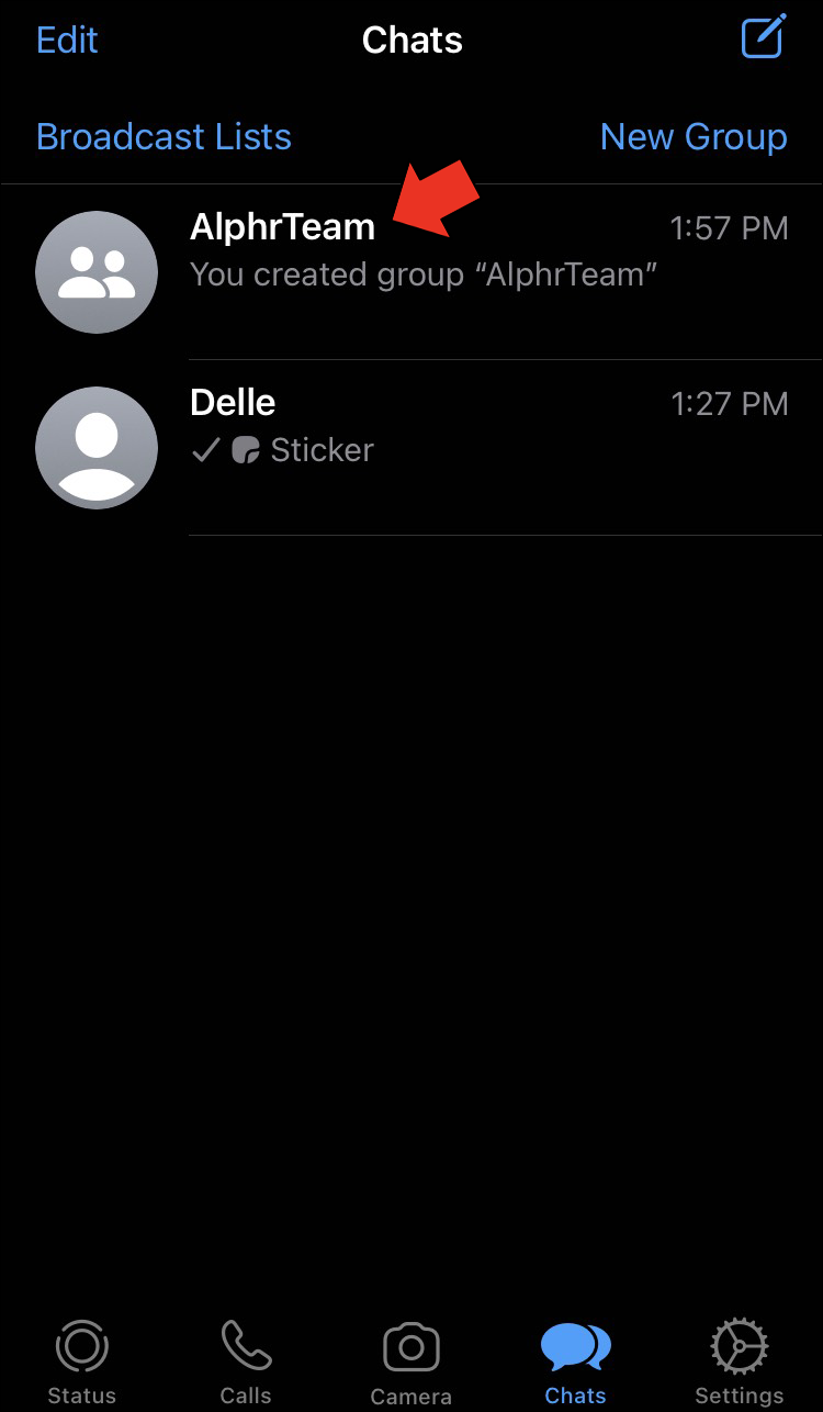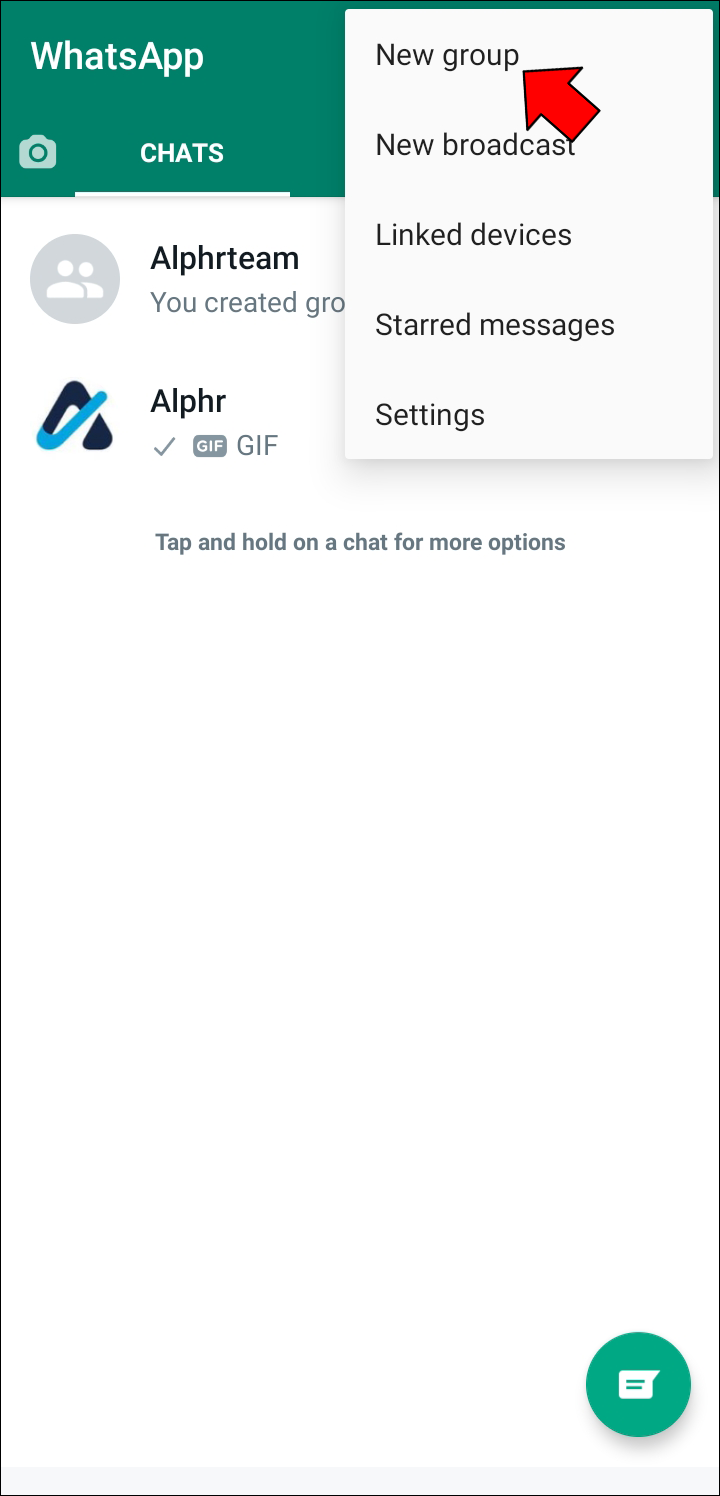 - Send someone a message to create your first chat, and the “New Group” option will appear at the top.