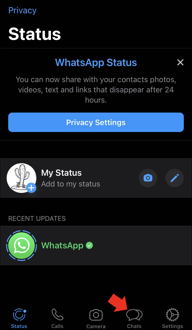 - Launch WhatsApp and make sure you’re in the chats tab.