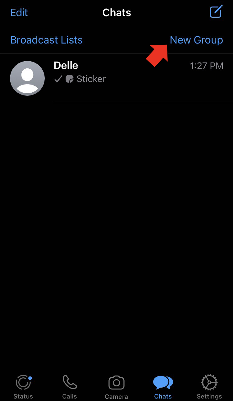 - Find the “New Group” option above your chats.