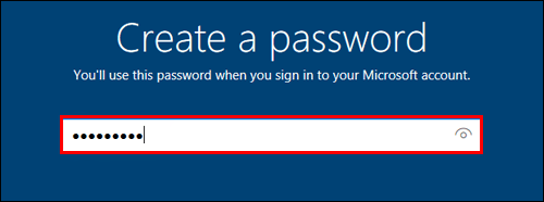 - A new interface will open at this point, requesting you to set up the password you’d like to use to access your computer and the official Microsoft website. Type in the password and hit Enter.