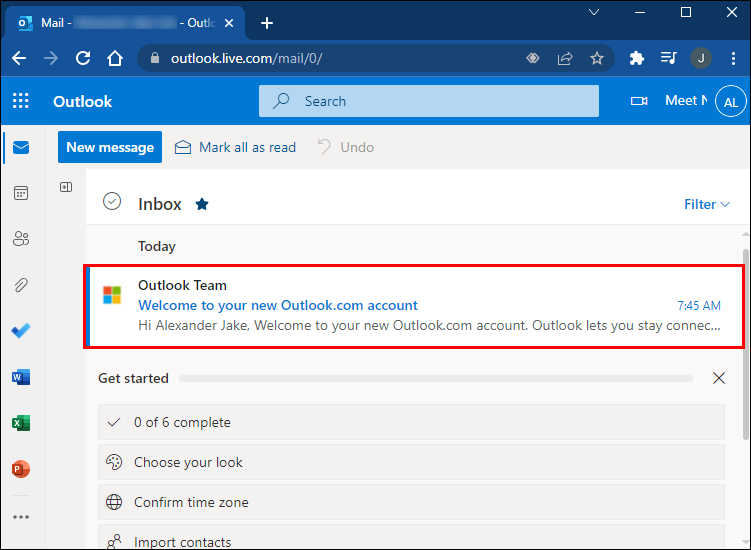 - Once this is confirmed, you will be taken to the Outlook “Welcome” page.