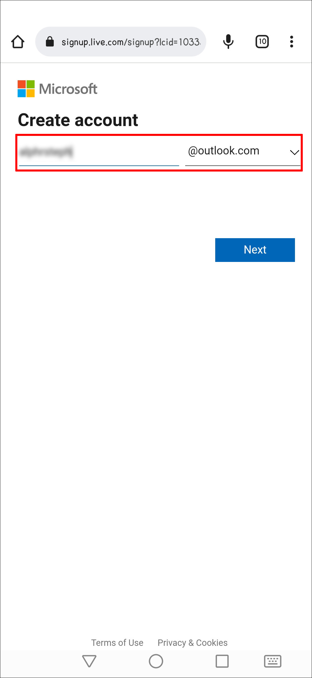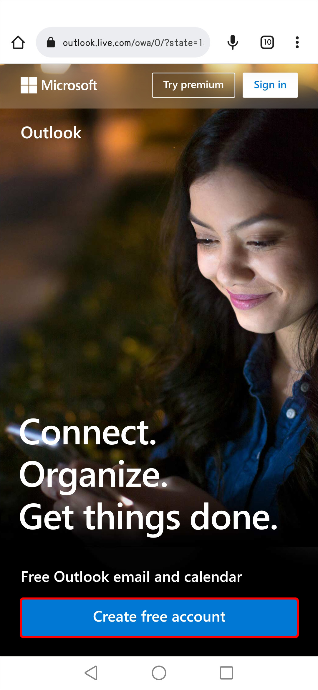 Another way that you can create a new Outlook account is through a web browser on your Android. Here’s how: