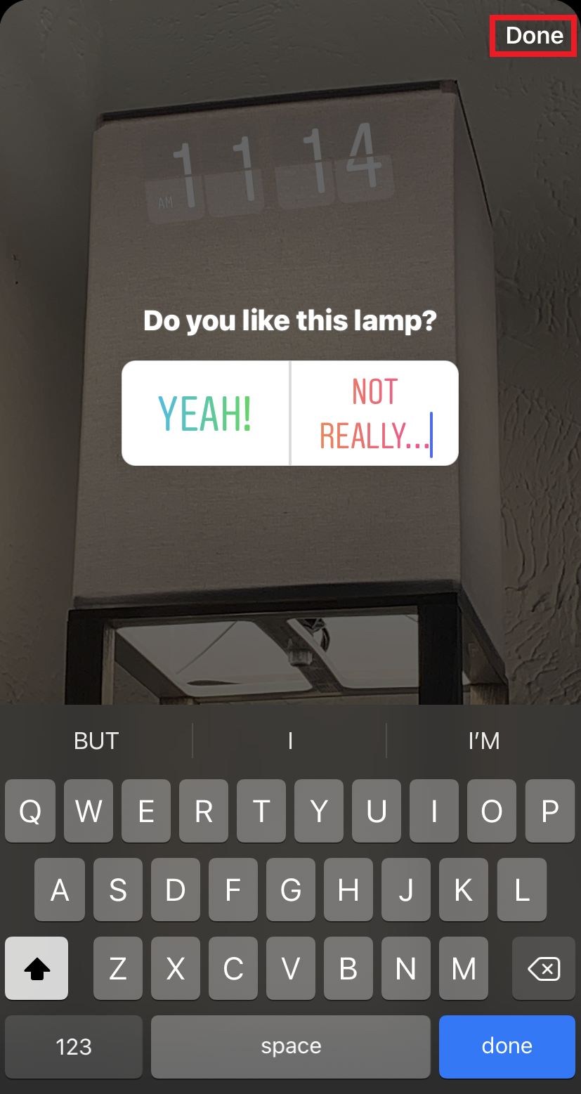 - Select “Done” to finish editing and place the poll sticker where you want on the image.