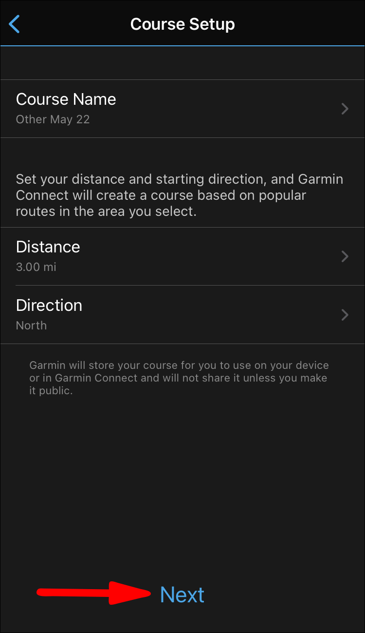 - If you chose Automatic, the app would customize a course with the Trendline Popularity Routing tool. Enter the title, direction, and distance, then tap “Next.”