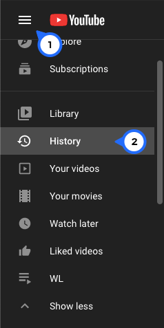 2. Click on the three horizontal lines in the upper right-hand corner. Then, click on History.
