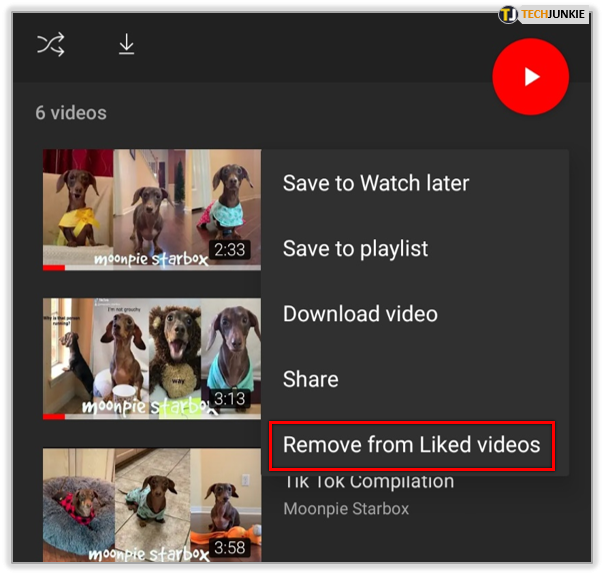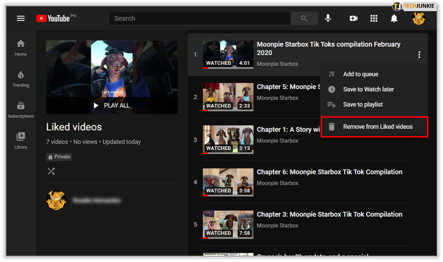 6. Select Remove from Liked Videos
