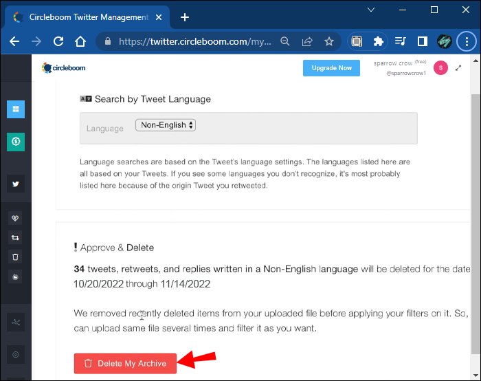 Do you want to remove all your tweets between two specific dates? Circleboom has another feature that has got you covered. Using the Twitter Archive Eraser, you can filter and delete entries from your entire archive, no matter its size.