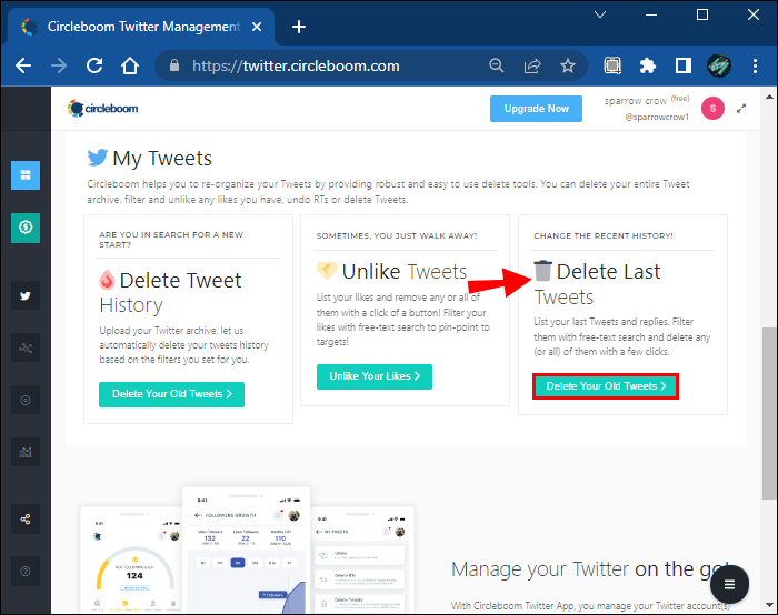 - Find the “Delete Last Tweets” option on your dashboard. Click the “Delete Your Old Tweets” button underneath.