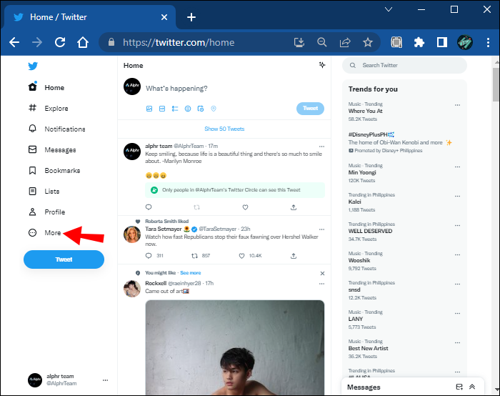 - Open Twitter and click the “More” menu.
