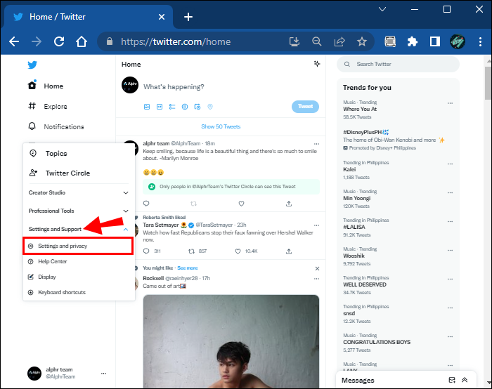 - Click “Settings and support,” then “Settings and privacy.”