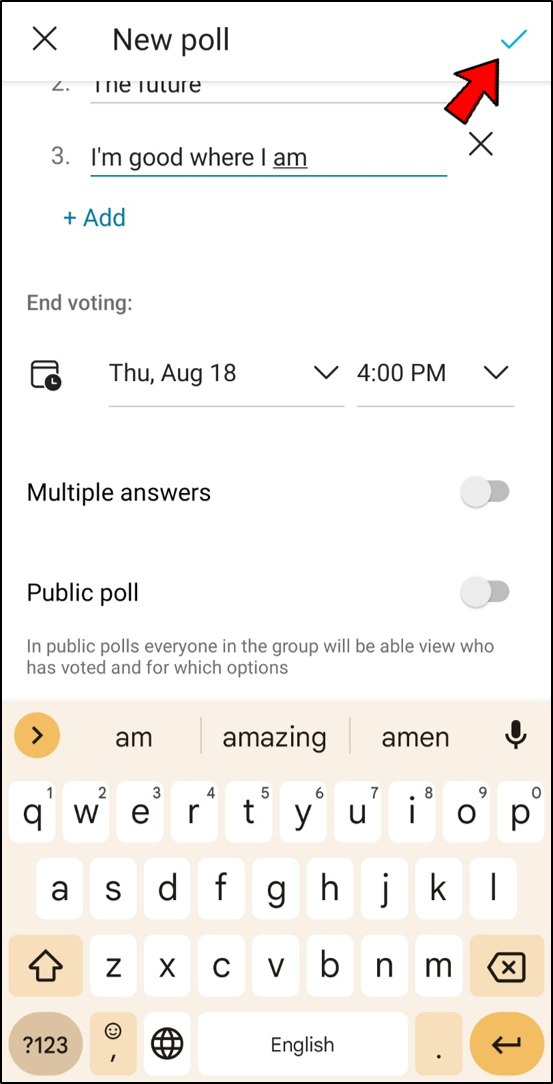 Note: If you want to cancel poll creation, press the X sign at the top-left.