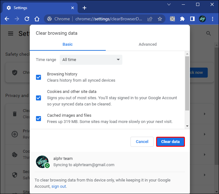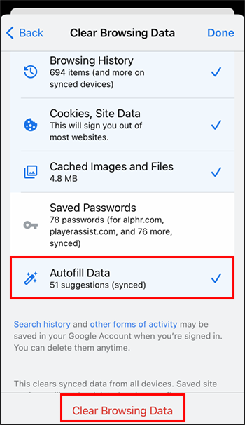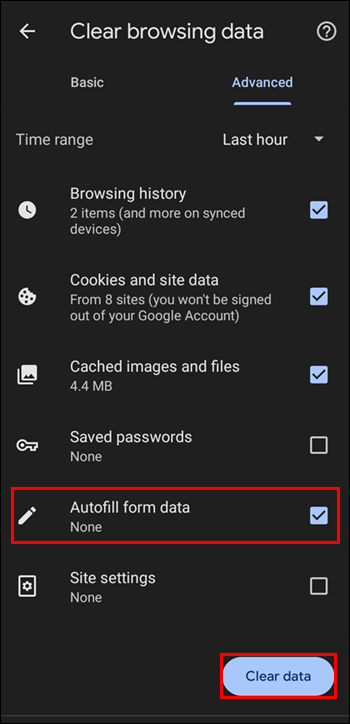 - Make sure that “Autofill data” is selected and then hit “Clear browsing data.”