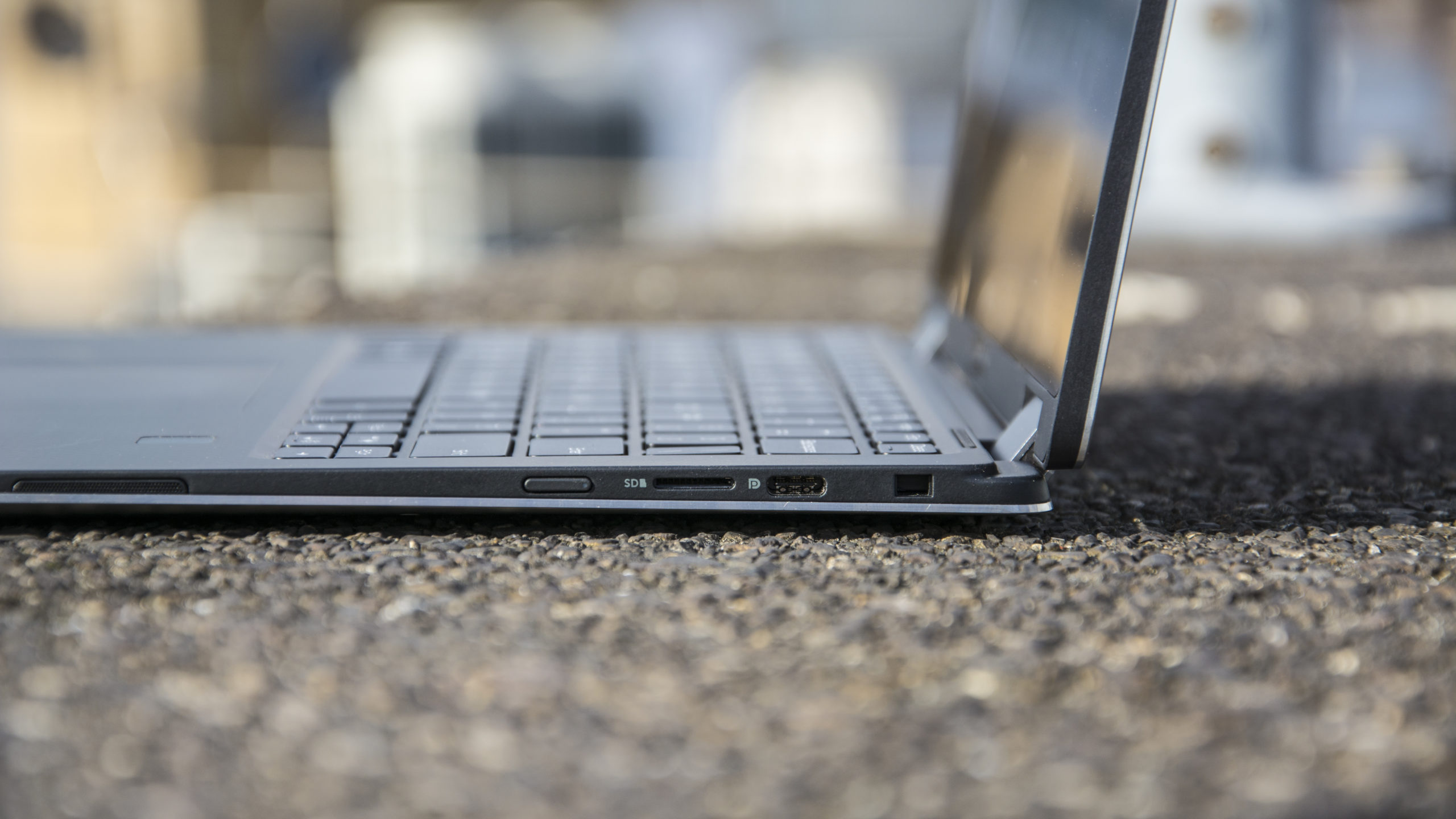 Making a thin and light design always involves some sacrifices, however, and in the case of the XPS 13 2-in-1, the one you’ll notice first involves the ports. There’s a USB Type-C port on either side (one of which supports Thunderbolt 3), along with a microSD slot and headphone jack – and that’s it. Dell does include a USB Type-C to Type-A adapter in the box, but you’d better get used to carrying it and a plethora of other dongles with you until the rest of the world catches up and everything moves to Type-C.