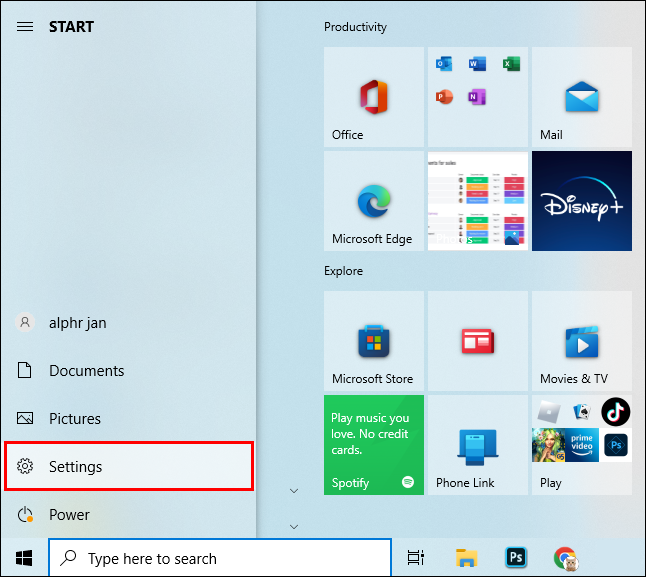 - Press the Start button and then click “Settings.” If you can’t find “Settings,” press Windows + I.