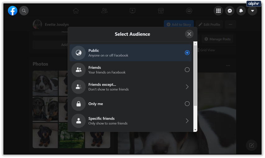 - Choose from Friends, Friends except…, Specific friends, Custom, or Close Friends.