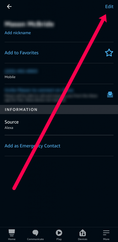 Tap on the contact you’d like to remove. Then, tap ‘Edit’ in the upper right-hand corner.
