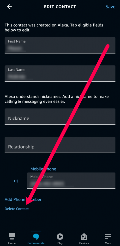 Tap ‘Delete Contact’ at the bottom.