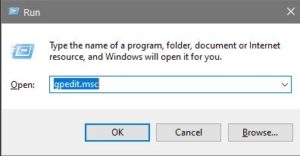 - Type ‘gpedit.msc’ into the box and hit Enter.