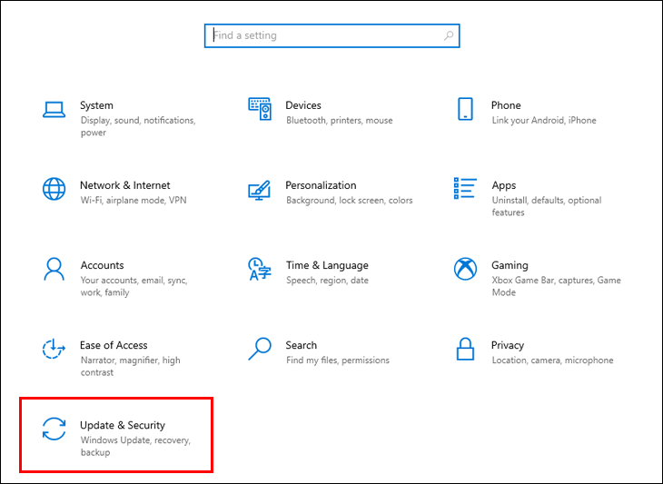 - Click “Update & Security.”