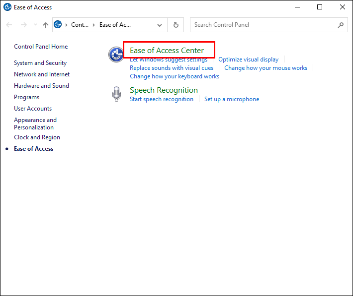 - Navigate to the “Ease of Access Center.”