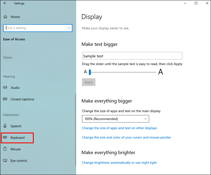 - Look for the “Make the Keyboard Easier to Use” menu option.