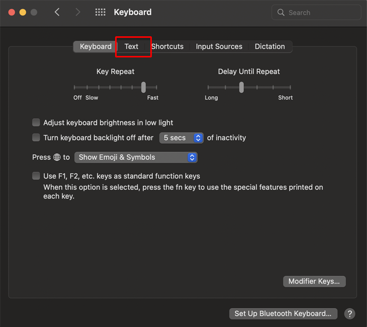 - Select the “Keyboard” tab.