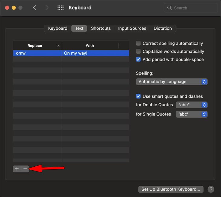 - In order to remove the keyboard shortcut, click the minus sign.