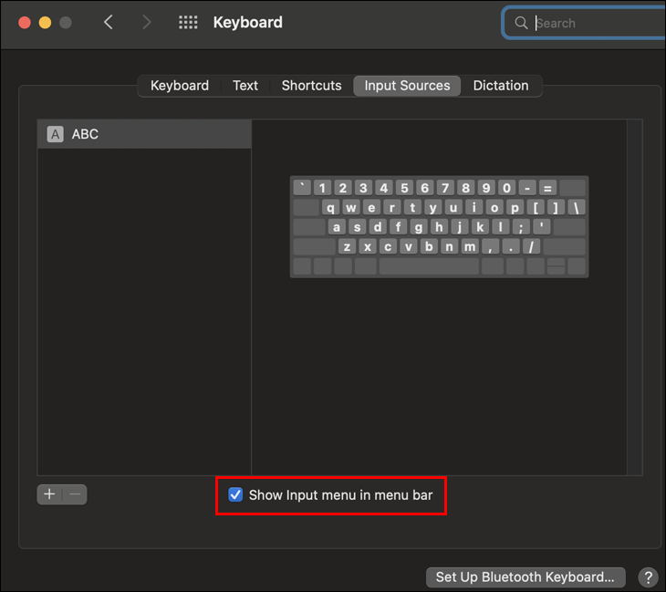 - In “Show Input Menu” in menu Bar, enable “checkbox.”