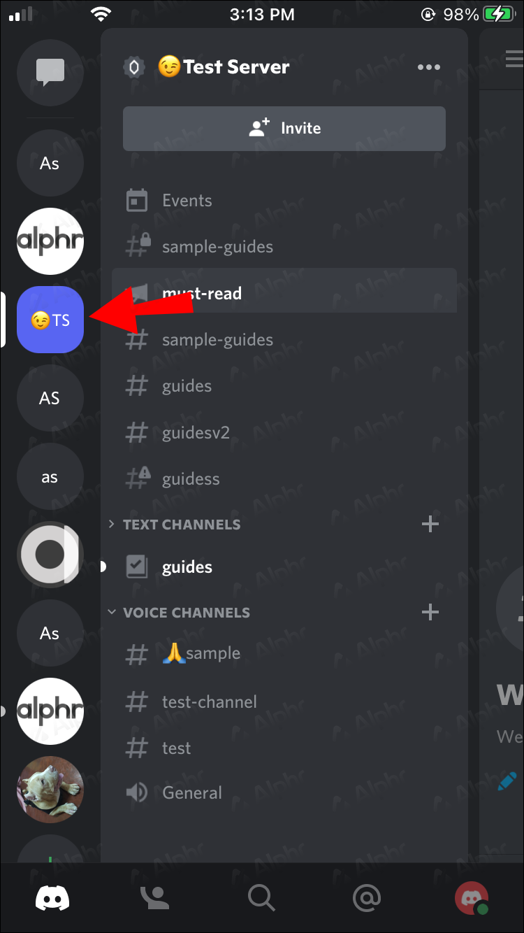 - Tap on any of your community servers.