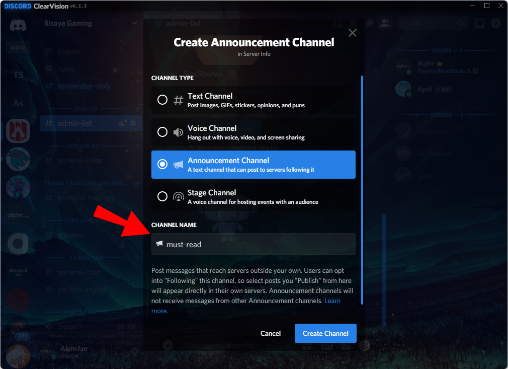Once you fulfill everything above, you’ll be able to set up an announcement channel on your server.