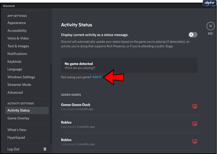 Another neat Discord settings trick is to add the activity you are currently doing manually. In most cases, Discord will pick up on your activity automatically, but just to be sure here’s how to add it: