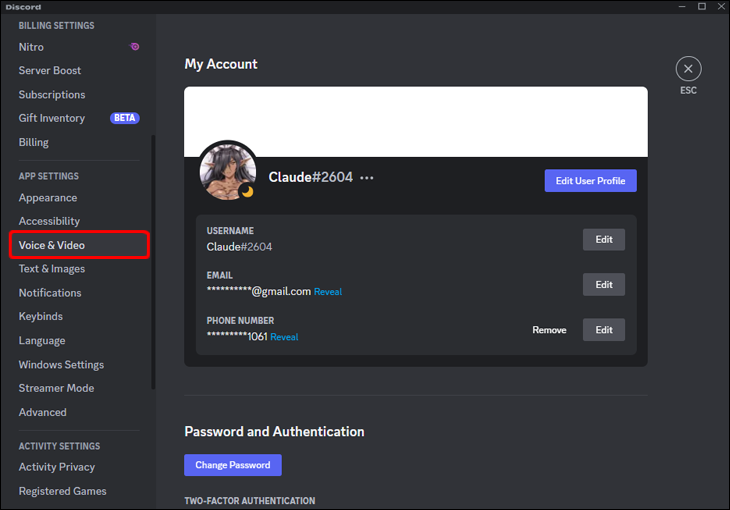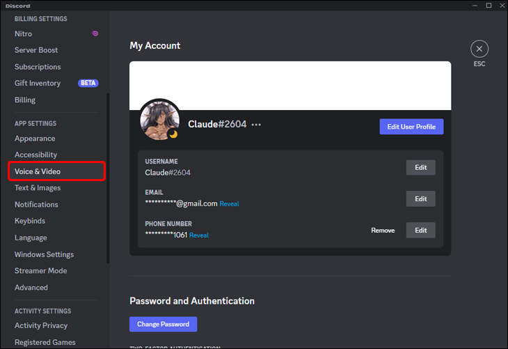 - Select “Voice & Video” from the left-hand menu.