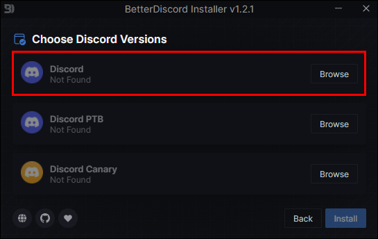 - Click on “Install BetterDiscord.”