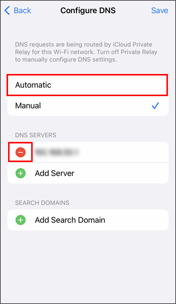 - Switch off Automatic at the top, and delete the existing values under DNS.