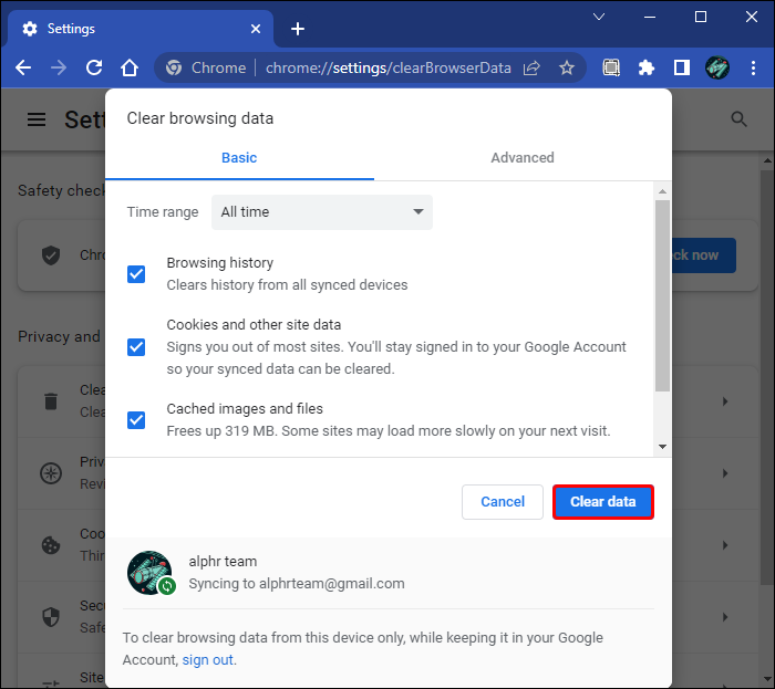 - Check the boxes next to the data you want to delete. These include Cookies and site data and Cached images and files.