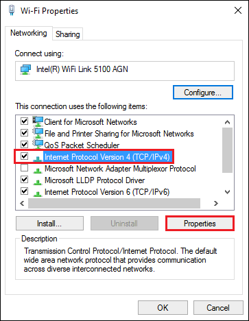 - Click on Internet Protocol Version 4 (TCP/IPv4), and click Properties.